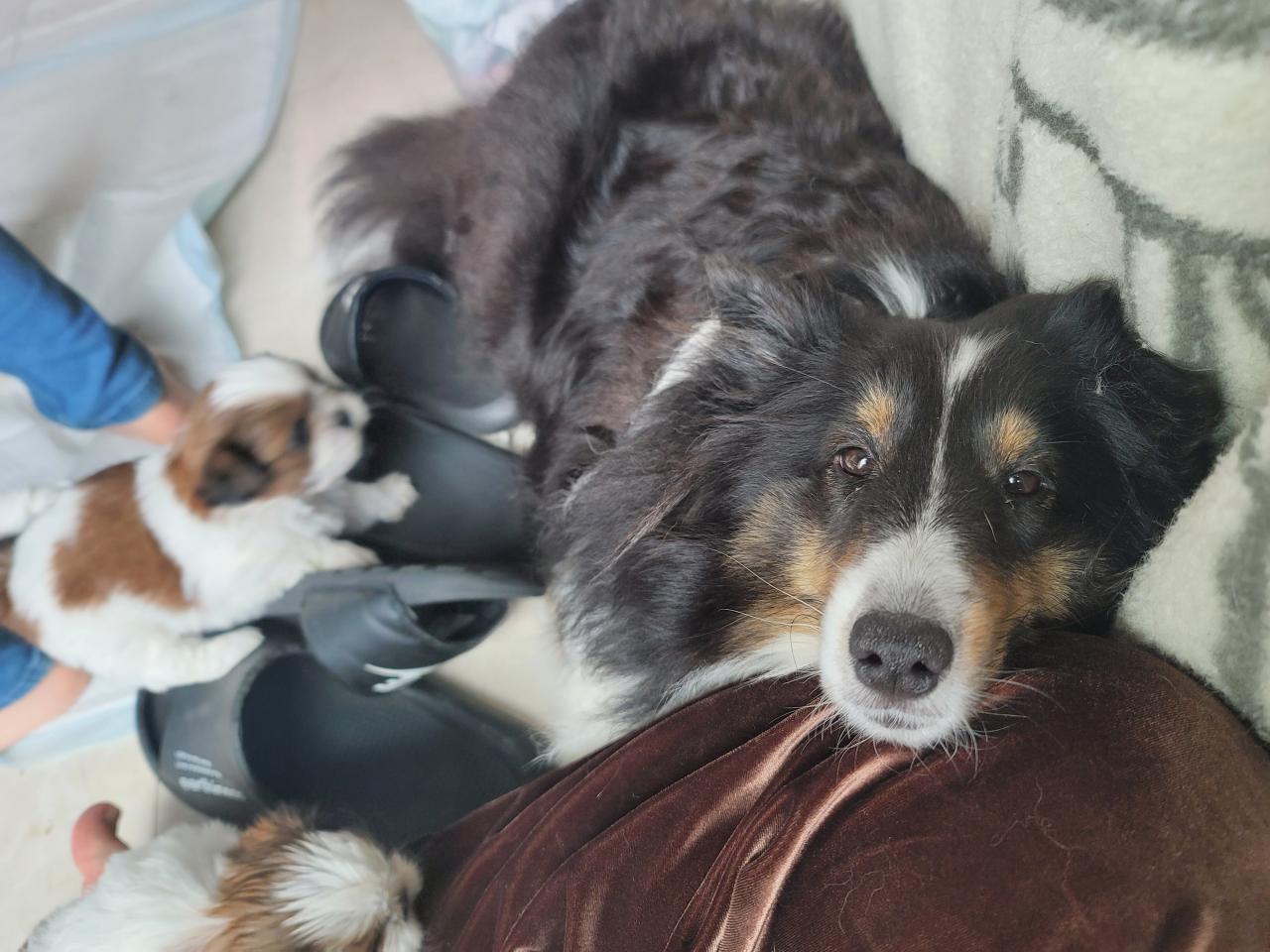 ノアっ子たちはスクスクと成長中で、2頭おめめが開きました🎶明日か明後日には全頭おめめが開きそうです✨ノアママも頑張ってるんですがやっぱりママだって甘えたい!!ということでひと休憩🥰私のお膝でクテーってなってました🤣もーめちゃくちゃ可愛いヤツ♥️ひと休憩した後はちゃんとベビー達の元へ🤣シェルさんもシーズーさん達もホントあまり手がかからずです😌もちろん子犬期はやんちゃっ子全開なので大変ですが💦