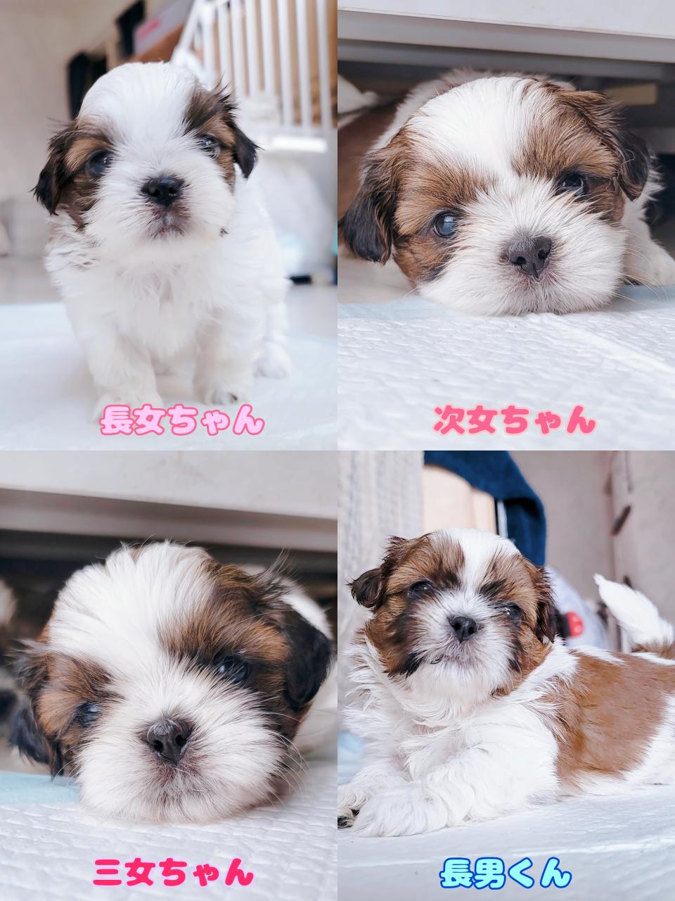 シーズーのウランっ子達は本日1ヶ月健診でした!!ペコ、デベソ、鼠径ヘルニア、骨格、心音、耳(外耳炎、耳ダニ)、噛み合わせ全て異常無しの健康優良児さん達でした😆✨
